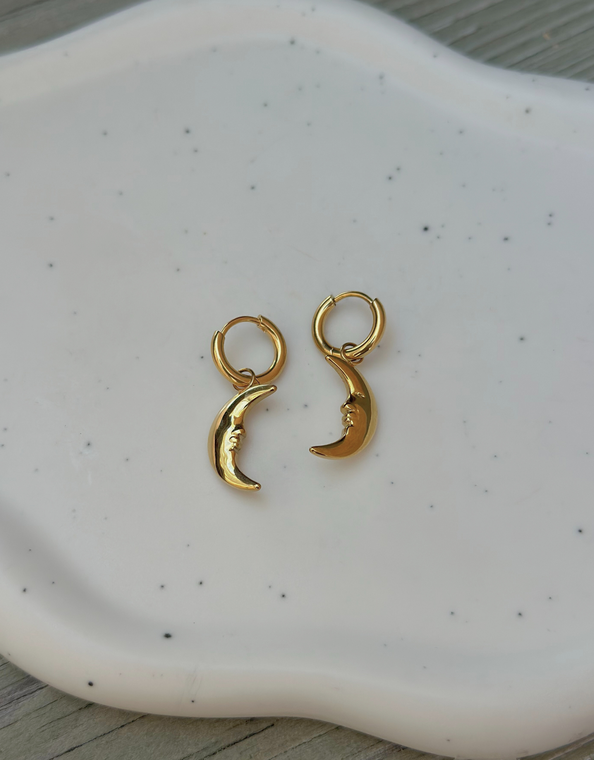 Øreringe i slidstærk materiale med de smukkeste måne vedhæng. Øreringene er vandfaste.