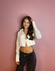 Smuk cropped skjorte med v-udskæring. Perfekt til en aften ude.